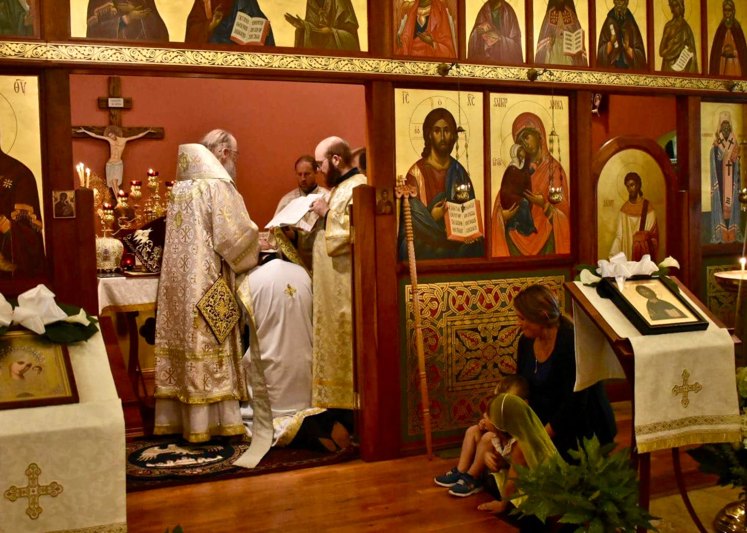 “The work of the priesthood is done on earth, but it is ranked among heavenly ordinances” says St. John Chrysostom (Chrysostom, On the Priesthood, 70). This “heavenly ordinance” of the priesthood is brought about by none but the Paraclete himself, that men “while remaining in the flesh might represent the ministry of Angels”. In this wise, as we see during the ordination rite proper, “The grace divine, which always healeth that which is infirm, and completeth that which is wanting...”(Hapgood, Service, 316) brings about via the imposition of hands the change from mere fallen and infirm man, into a minister who, while remaining flesh, might begin to do the work of Angels.